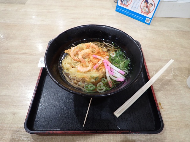 朝飯に海老かき揚げ天そば¥850-をいただきます。ズズッとすすったら..さすが関西、出汁がきいてました。it’s good !
