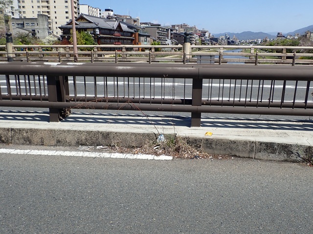 五条大橋の下を流れるのが鴨川で、車窓右に見える家並の裏がおそらく木屋町辺りでしょか?..