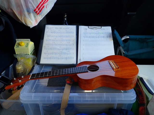 軽く一杯ひっかけて、ウクレレを弾きまくりました。しめはアロハオエ.. 「ハワイ最高」!.. ..