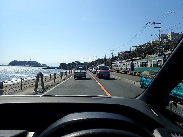 右には江ノ電、左には江の島.. 湘南ボーイになった気分。