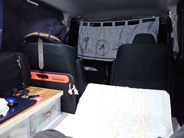 福島へ仕事に出る日.. リニューアルしたヴォクシーの車内↑はこんな感じ。1週間の仕事を無事終えたなら車中泊して紅葉の東北を彷徨うつもりでした。