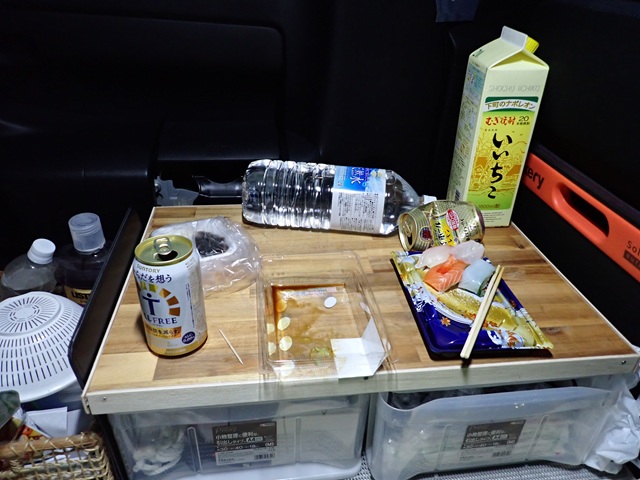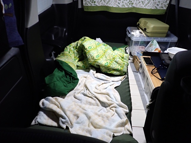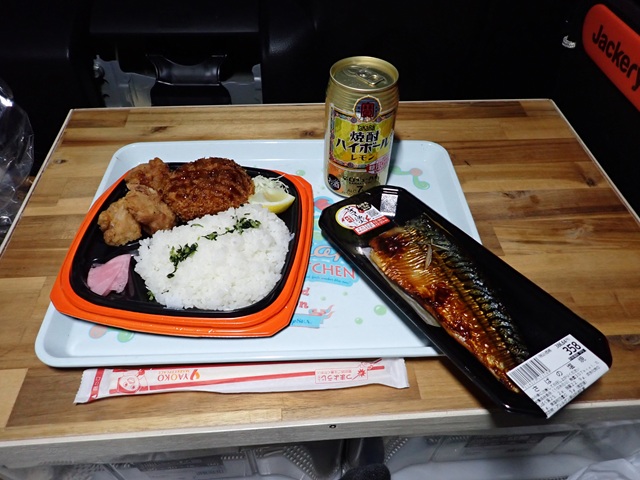 そんなこんなで ここ最近はトラックのアイドリングが響き渡るパーキングエリアで夕飯を食べたら朝まで仮眠するようにしています。