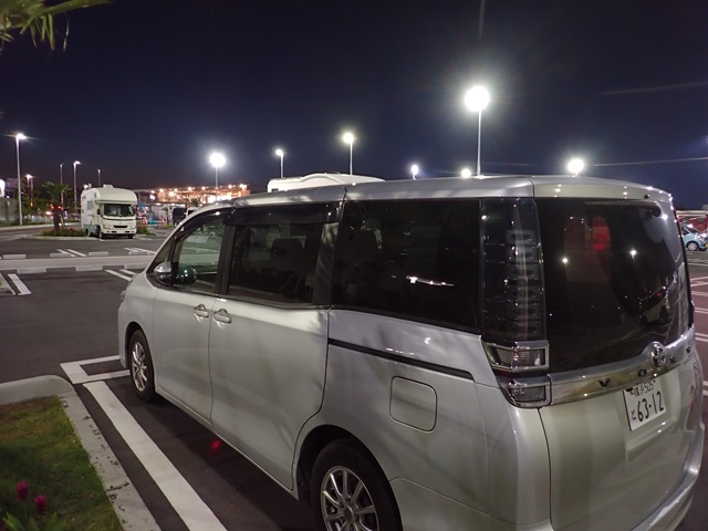 フムフム.. 車中泊禁止なる文字は見当たらず一安心、姫路や京都ナンバーのキャンピングカーに東北ナンバーの車中泊車なども結構見受けられました。