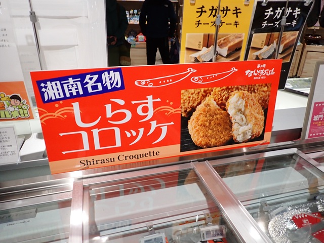閉店間近のショップには湘南野菜や湘南で獲れた海産物など.. 湘南名物のしらすのコロッケなんかもあるようです。