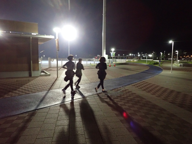 おっと↑..ナイター照明の元 走る美熟女ランナー?.. こんなのを見ると今は亡き師匠とすごした若かりし頃を思い出します。親爺泣き.. 老い.老い..老いの涙