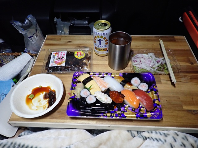 車内で夕飯が食べられれば満足な私のしょぼい旅なのです。年金生活者はいつもの暮らしじゃ刺激がたりなくて、こんな他愛のないことで充分満足できるのです。私だけかも?..