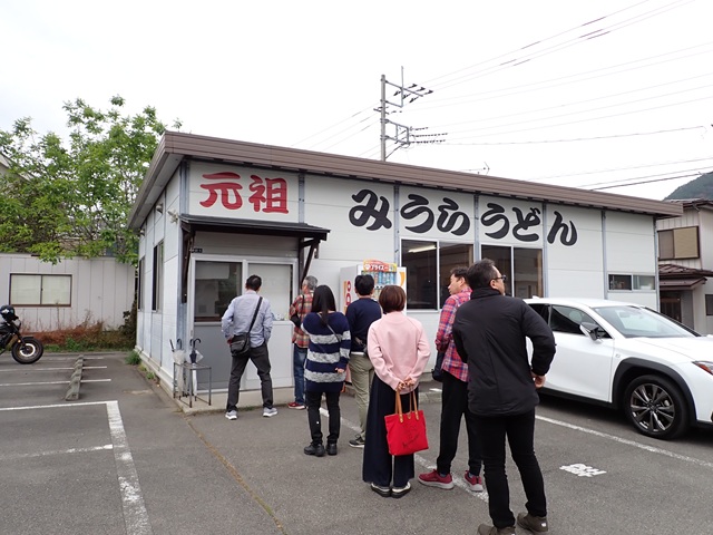 10時開店の元祖 みうらうどんにたどり着いたのが9時50分。その時すでに行列ができていました。