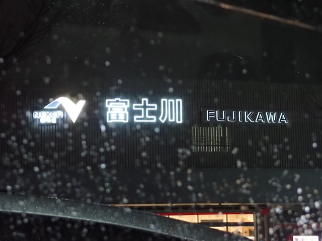 富士川SAに到着したのは17時20分、ネオン輝くサービスエリアでした。