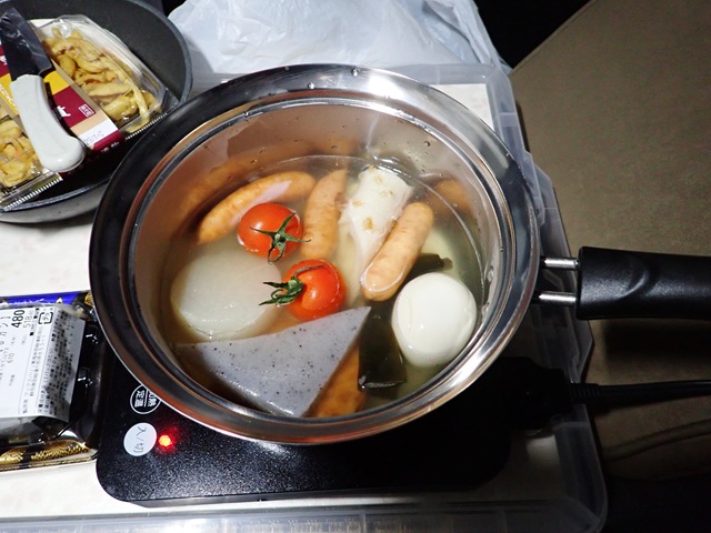 寒い夜でIHクッキングヒーターでおでんを温めることに..