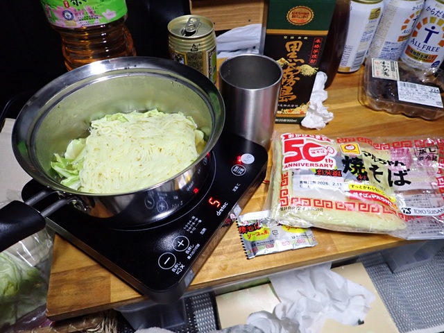 おでん鍋を食べて、しめはマルちゃん焼きそばの麺を鍋汁に入れて食べました。