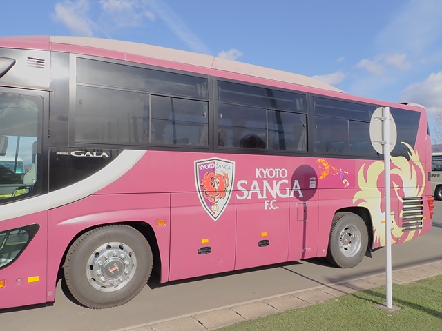 たどり着いたら駐車場にはこんなの↑が.. KYOTO SANGA FCのバスです。ガキのうちからこんなのに乗って試合会場に行くなんて.. ちと贅沢すぎると思う親爺です。
